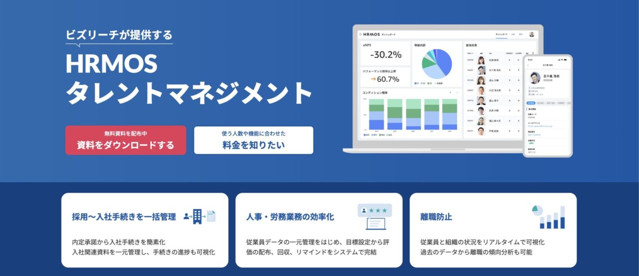 労務管理からタレントマネジメントまでカバーするクラウドサービスで、従業員サーベイ機能も備えています。