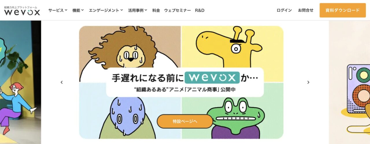 1億件超の回答データを蓄積しており、業界他社との比較分析も可能です。月額330円/人のベーシックプランから利用でき、規模を問わず導入しやすくなっています。