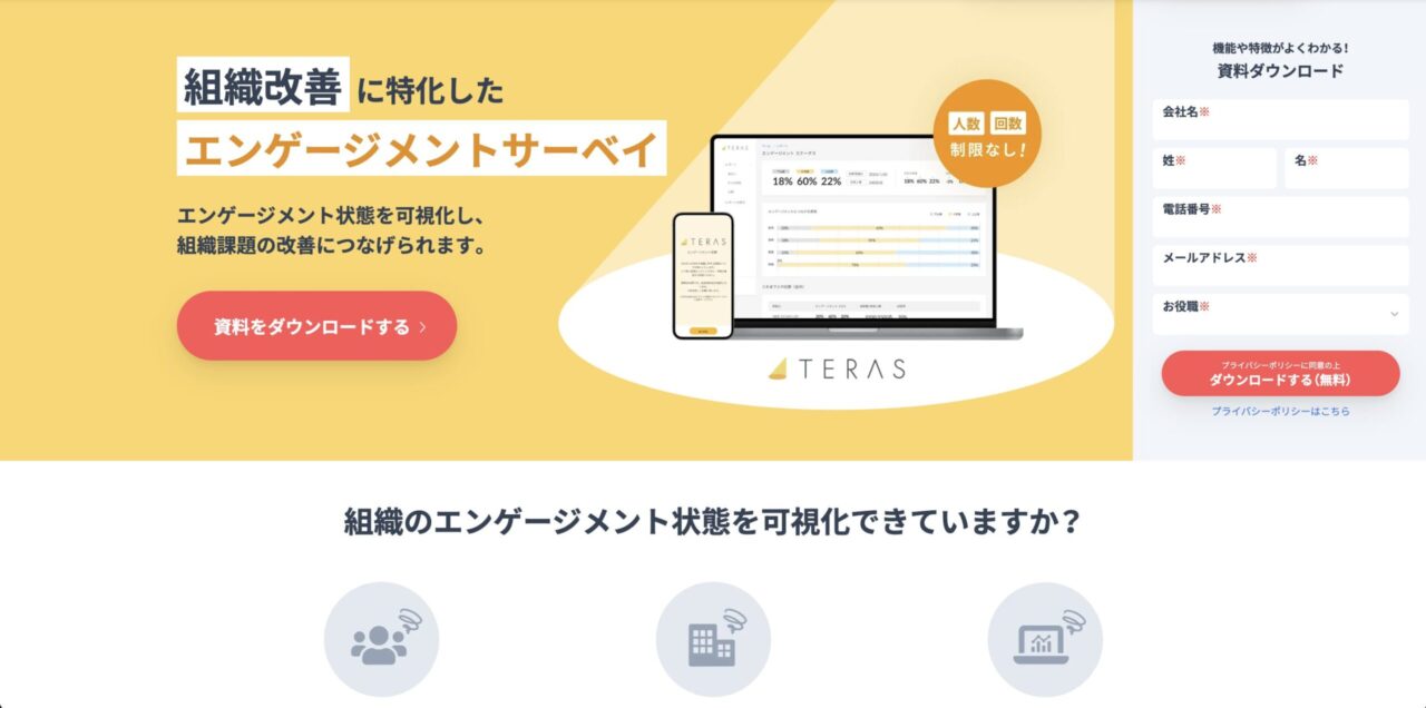 | ツール名 | Wevox | モチベーションクラウド | ラフールサーベイ | バヅクリ エンゲージメント | TERAS |