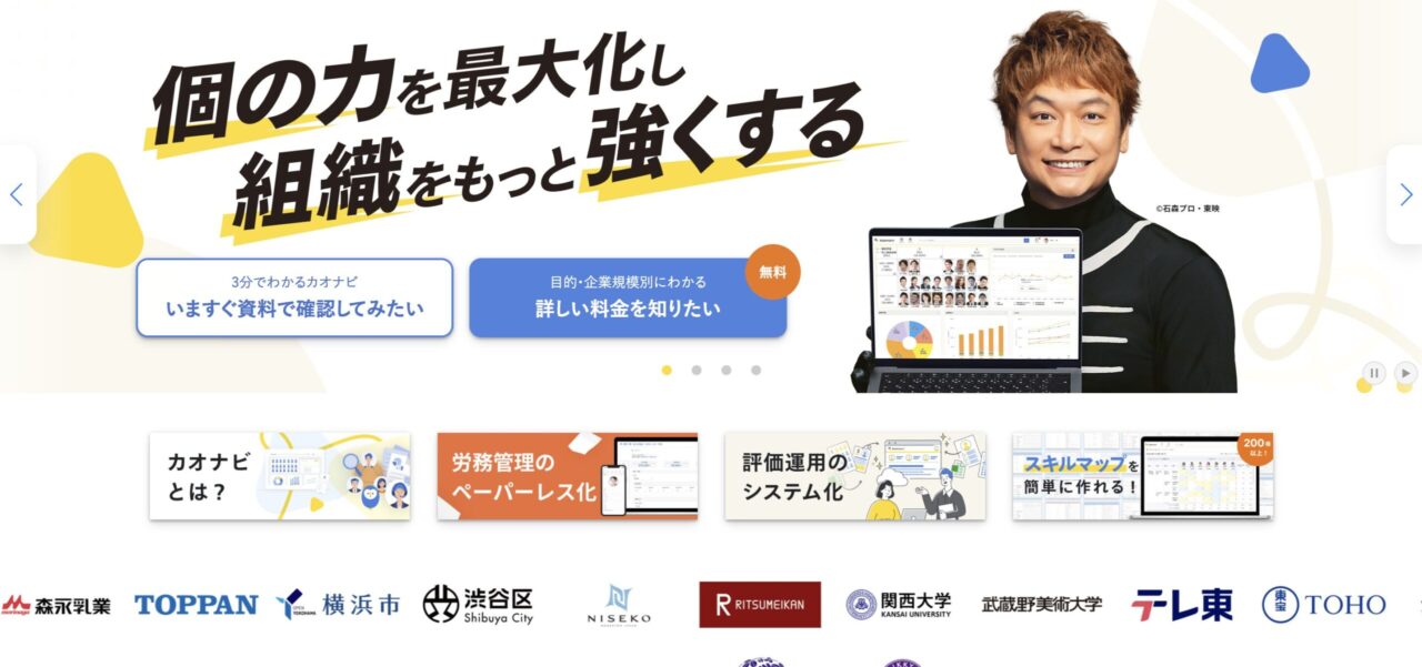 カオナビは、4,000社以上が導入するマネジメントシステムで、パルスサーベイ機能が標準搭載されています。人材データベースと連携することで、サーベイ結果と評価履歴・異動履歴を掛け合わせた分析が可能です。