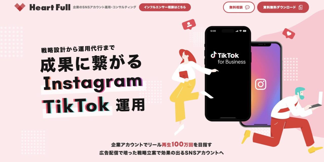 フォロワーが増えない、再生数が伸びない、運用に手が回らない…そんなお悩みをお持ちの方は、株式会社Heart Fullへの相談を検討してみてはいかがでしょうか。