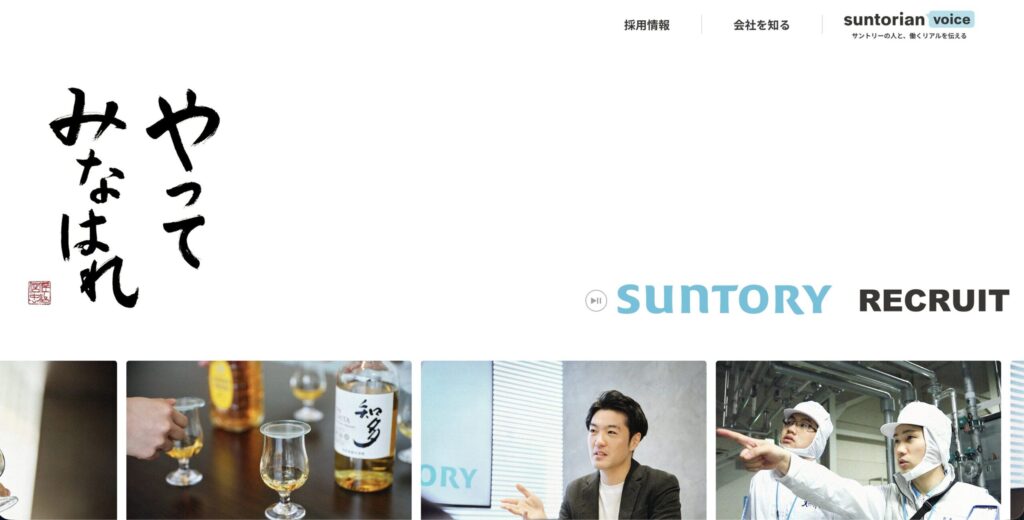 サントリーホールディングス株式会社の採用サイトは、創業者の口癖である「やってみなはれ」をコンセプトの中心に据えています。