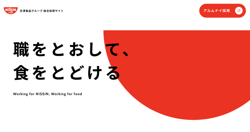 日清食品グループは、即席麺を中心とした食品の製造・販売を手がける企業です。採用サイトでは視認性を重視し、シンプルな仕上がりを演出しています。
