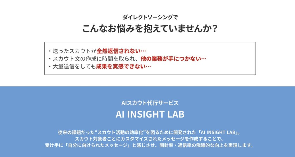 | 強み | スカウト返信率の向上&AIによる業務効率化 |